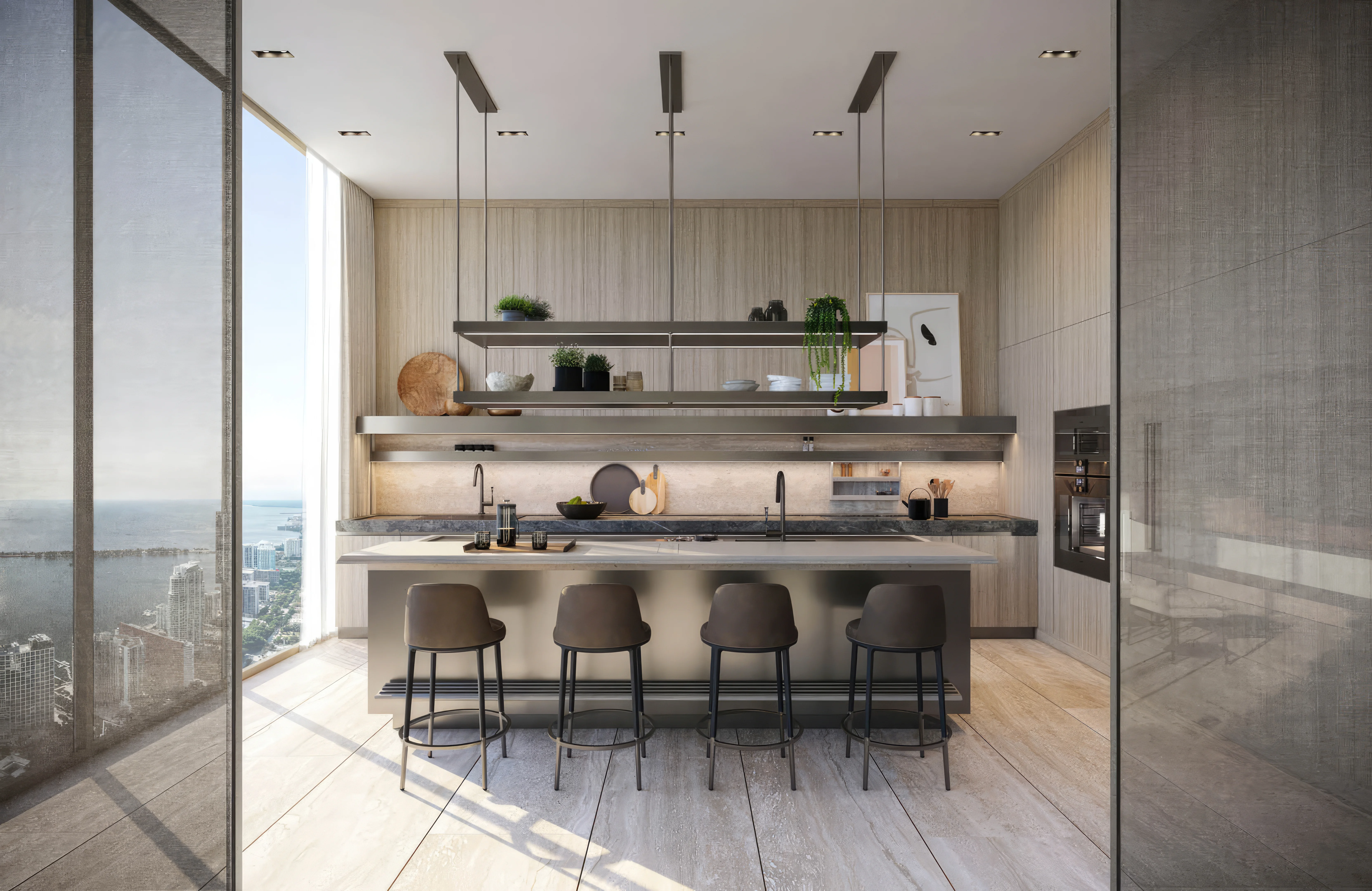 The Residences at 1428 Brickell will also boast over 80,000 square feet of amenities. These will be located at the top of the tower, over 860 feet high, including private and shared spaces with panoramic views. Amenities will feature a 10,000 square foot gym, a rooftop pool and atrium, a hot spa, a two-story wine and art lounge, office suites, a private dining room with a Vaselli kitchen, a juice and wellness bar, a spa, an aquatic therapy area, a children’s center, guest suites, and more. Ytech is known for its meticulous attention to detail, ensuring the highest standards from concept to construction.